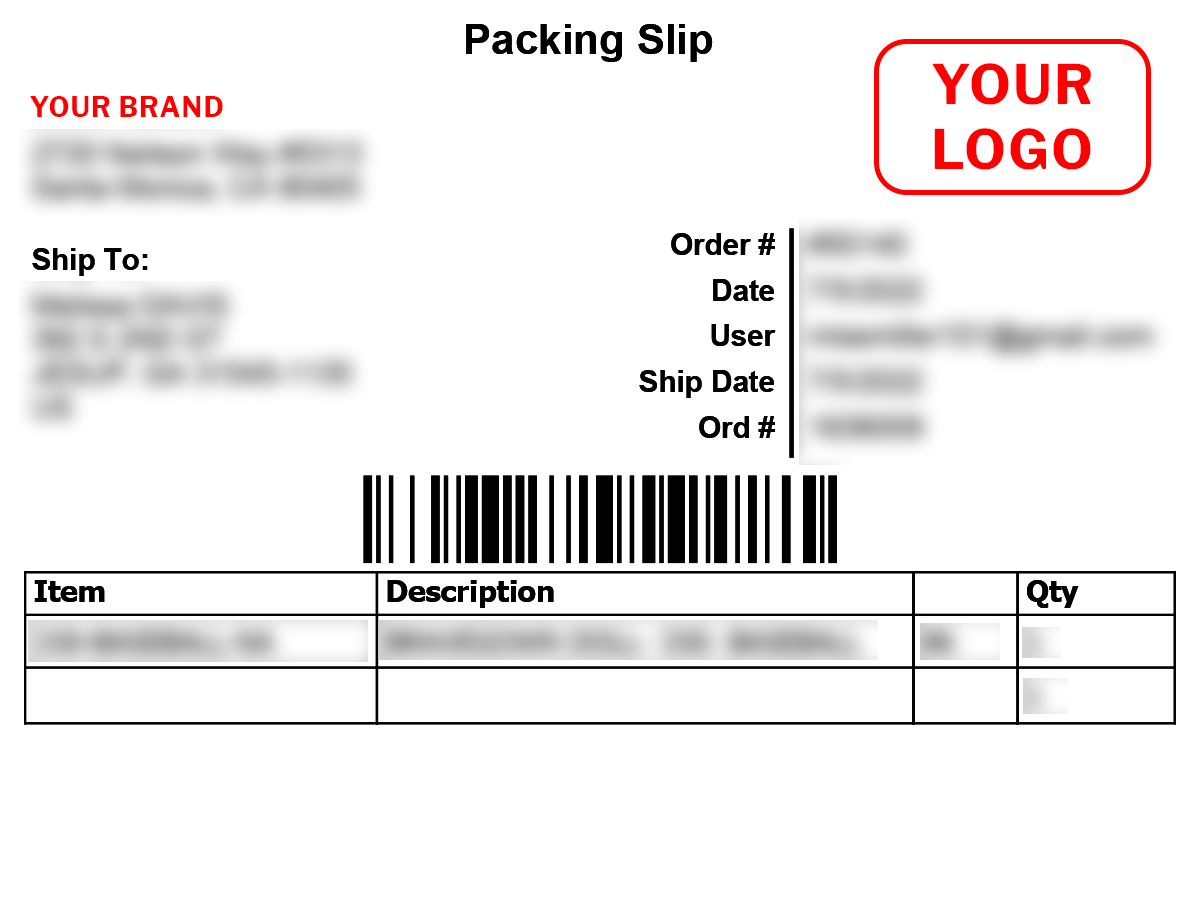 Note: Packing slips are black & white. Red is used for instructional purposes above only.