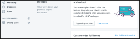 - Scroll to the bottom of the page and click Add fulfillment service (as shown below)