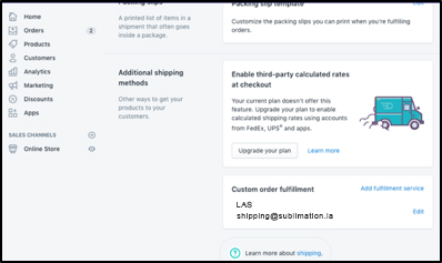 Edit all your Amazon products in Shopify to ensure the fulfillment service is set to LA Sublimation. This step is crucial for your orders to import correctly into our Order Management System. For more details, please refer to Shopify’s guide on setting up fulfillment services.